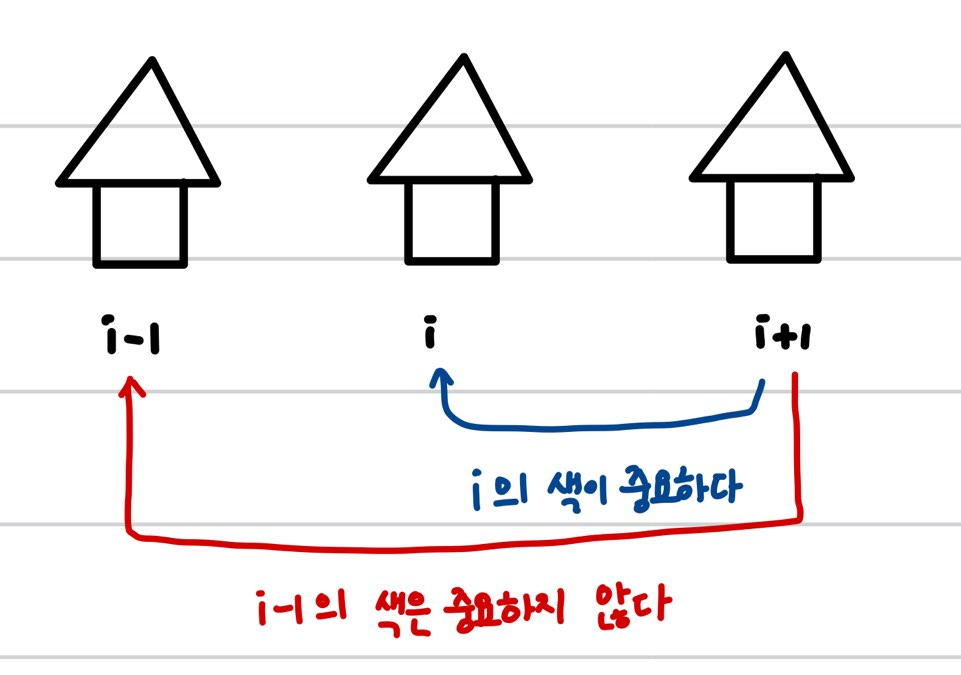 - i+1๋ฒ์งธ ์ง์ด R์ผ ๋, i-1์์ G๋ B ์ค ๋ ์ ์ ๋น์ฉ์ ๊ฐ๋ ๊ฒ์ ์ ํํ๋ฉด ๋๋ค.